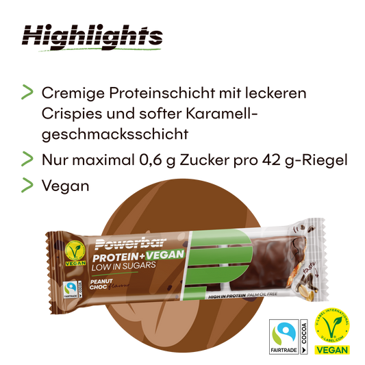 PowerBar PROTEIN+ VEGAN Low in Sugars 42g - Peanut Chocolate