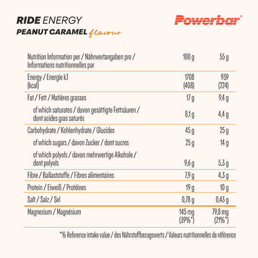PowerBar PROTEIN+ Low in Sugars RIDE Energy 55g - Peanut Caramel