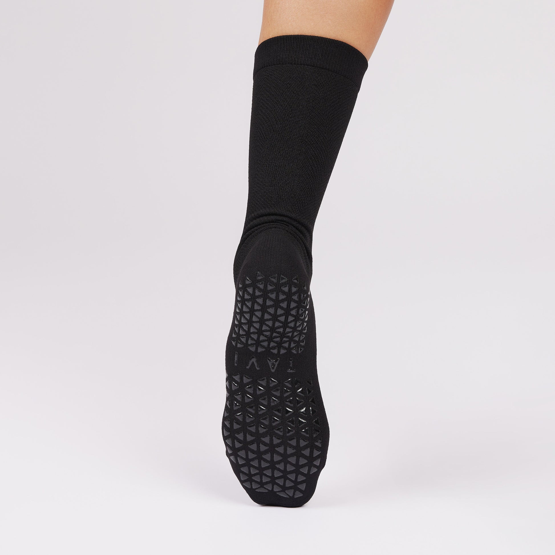 TAVI Kai Tec Crew Grip Sock for barefoot fitness activities like yoga, barre, Pilates and also made to wear in shoes for high impact activities that require interior and exterior grip.